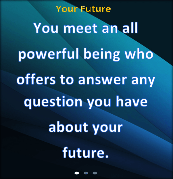 An all powerful being offers to answer any question you may have about your future. There’s only one rule.