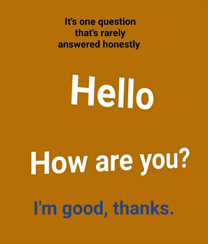 So, how are you? Is an interesting question. If the question is being asked by someone in the medical profession, you’d probably give an honest answer. If the question is being asked anyone else, the answer will be dependent upon the relationship between you and the person asking the question.