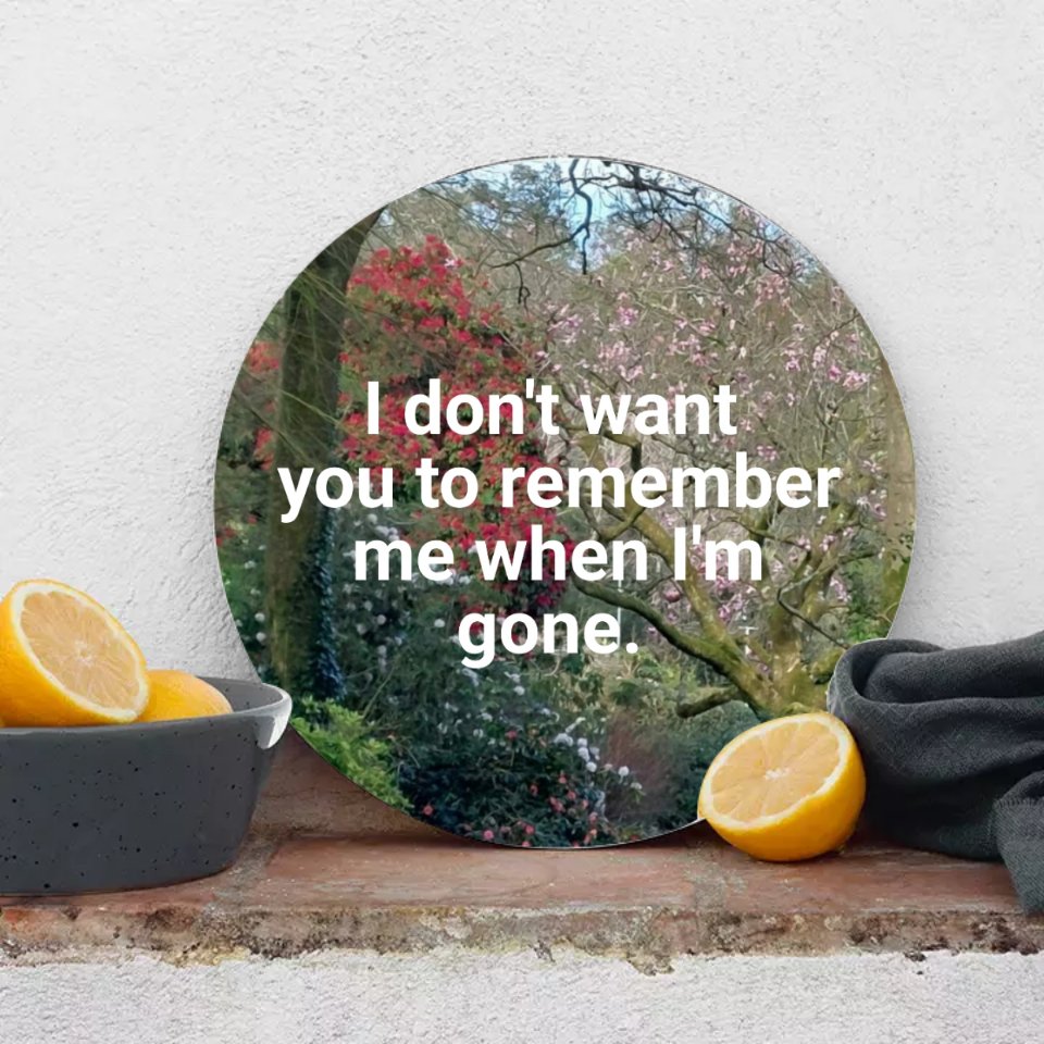 I don’t want you to remember me when I’m gone because you were born to live your life, not spend your life remembering mine.