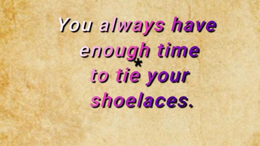 One of the most important life lessons people can learn is that there’s always enough time to tie your shoelaces.