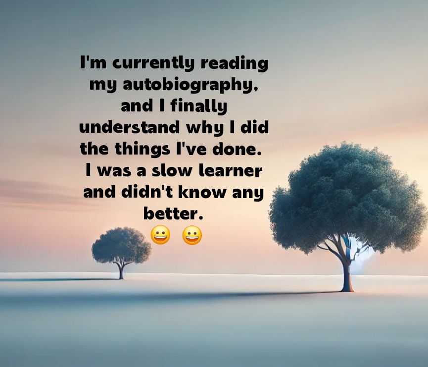 I’m currently reading my autobiography, and I finally understand why I did the things I’ve done. I was a slow learner and didn’t know any better. 😀