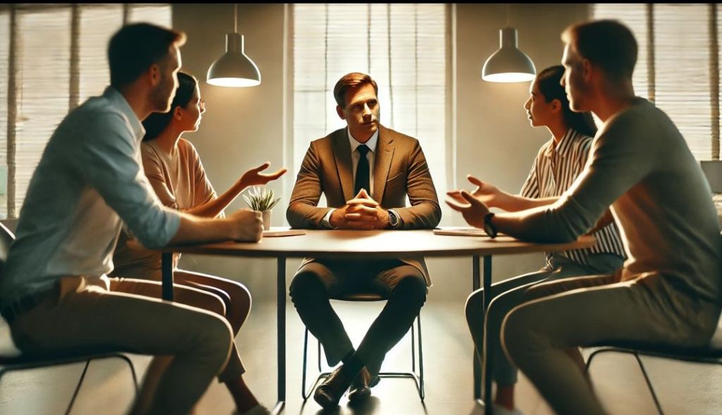 At Duffy’s Office Supplies, the boss clapped his hands. “Team! Synergy brainstorm!”